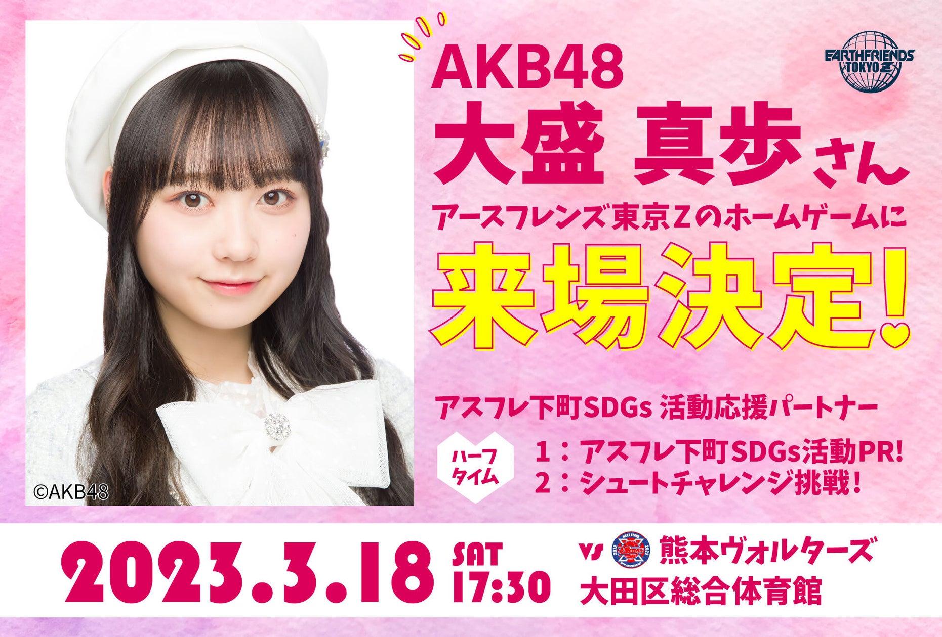 3/18(土)アースフレンズ東京ZホームゲームにAKB48 大盛 真歩さん ゲスト来場決定